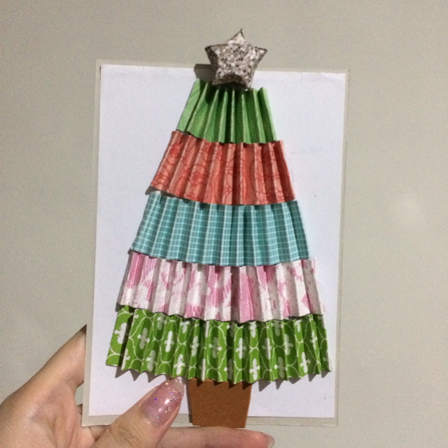 Christmas gift exchange is also a tradition in their family and I made this card, which is a little fail, but still looks like a Christmas tree la.